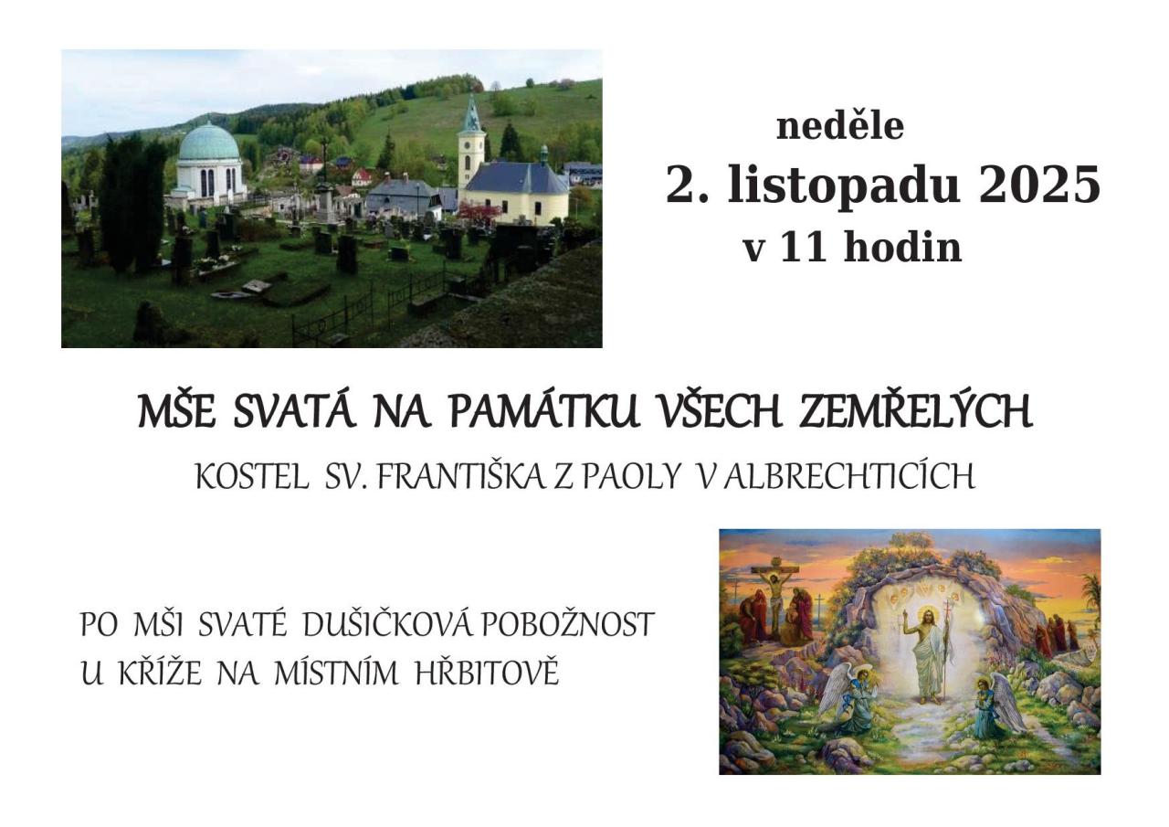 Mše svatá na památku všech zemřelých, kostel sv. Františka z Paoly Albrechtice, 2.11.2025 od 11:00 hod.