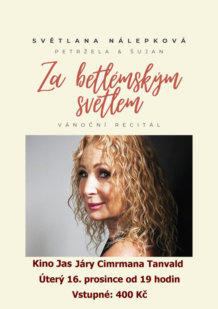 Kouzlo adventu a Vánoc si můžete vychutnat na jedinečném koncertě herečky a zpěvačky Světlany Nálepkové, který se uskuteční 16.12.2025 od 19 hodin v kině Jas v Tanvaldě.