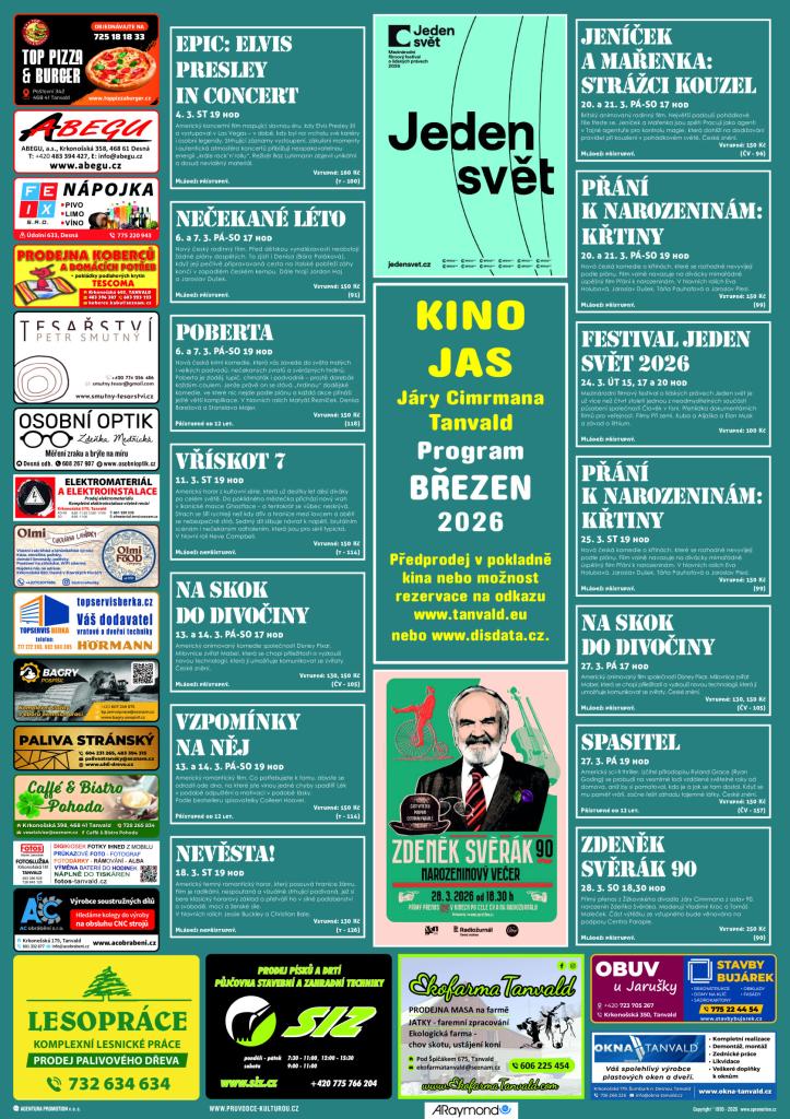 Program Kina Jas Járy Cimrmana Tanvald na březen 2026. - pdf Typ: PDF dokument, Velikost: 335.56 kB